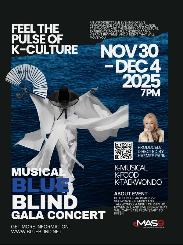 Experience Blue Blind — a reimagined Korean folktale blending music, storytelling, and Taekwondo performance.
